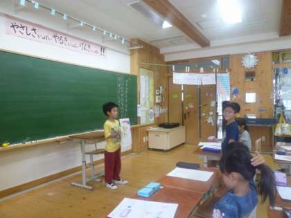 自分のすきなものを,絵を見せながら,紹介しました。「どうしてかというと」という話型を使って,すきな理由もしっかりと説明することができていました。