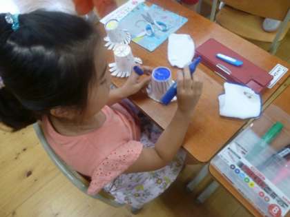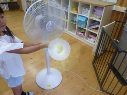今日は,風の力を使って回るおもちゃをつくりました。紙コップに切り込みを入れて,風を受けると回るような仕組みにしました。子どもたちは,飾りや模様も考えて,カラフルに仕上げていました。うまく回ると,とても嬉しそうでした。
