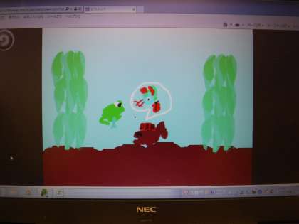 魚がかえるの「大きなはねの生えたさかなの鳥を見ました。」という話を聞いて,