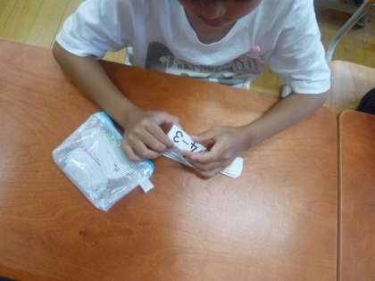 毎日空いている時間に,計算カードを使って,ひきざんの練習をしています。たしざんに比べて,ひきざんは苦戦していますが,繰り返し練習をして覚えていきましょう!