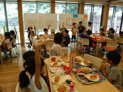 転入生も仲間入りして,にぎやかに全校で給食を頂きました。