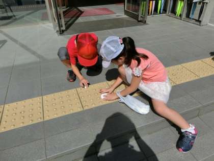 粘土を使って,いろいろな場所の「でこぼこ」の形をうつしとりました。点字ブロックやボタンのでこぼこに粘土を押し付けてみました。うつしとった形から,「メロンパンに見える!」「顔に見える!」と,想像を広げていました。最後は,粘土に色を付けました。絵具を使うのは初めてでしたが,上手に色付けができていました。