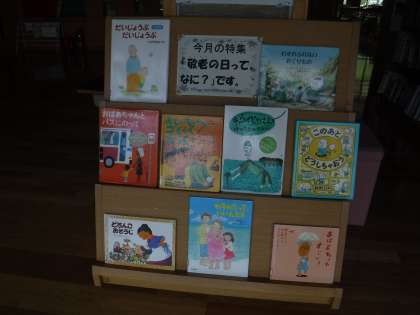 展示図書では,敬老の日にちなんだものを紹介しています。