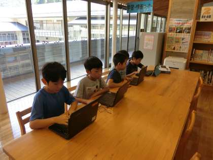 2階学習・情報コーナーで,3年生がscratchに親しんでいました。