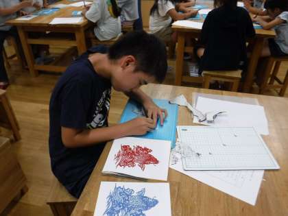 6年生の切り絵の作品が,今年も当日の灯籠に使われるそうです。