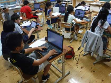 5年生が,パワーポイントを使って,