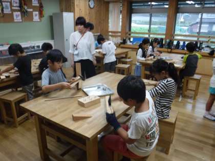3年生が,図工の学習でくぎ打ちに挑戦です。