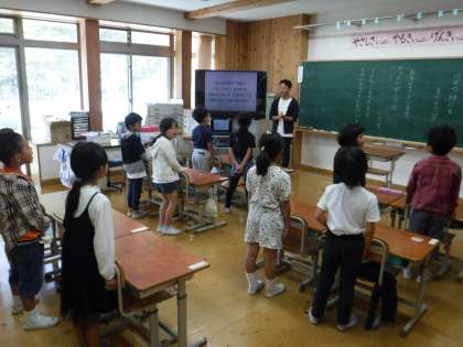 朝の時間に,1年生の教室から元気な歌声が聞こえてきました。