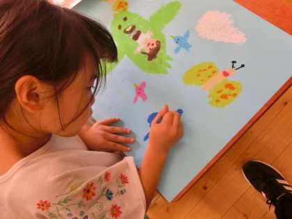 今日は,乗ってみたいものや,いってみたいところを想像して絵を描きました。「鳥の背中に乗って空を飛んでみたいな。」「サンタさんのそりにのっていろいろな国に行ってみたいな。」と,想像を膨らませながら描いていました。