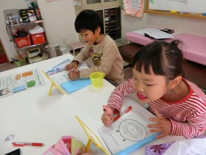今日から個別の歯磨き指導が始まりました。専用の薬をつけて歯の磨き残しをチェックします。