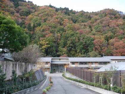 八瀬の里は秋が深まり,学校西側の山々がオレンジ色に染まっています。