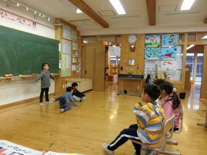 新しくできた「おわらいがかり」が早速みんなにネタを披露してくれました。みんな大笑いで盛り上がりました。
