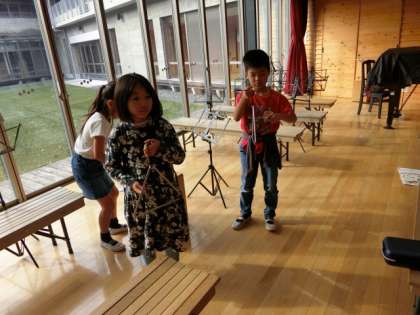 今日は,トライアングルや鈴,シンバルなどの楽器を鳴らして,どんな音がするか聴きました。子どもたちは,同じ楽器を鳴らしても,鳴らし方によって音が変わることに驚いていました。