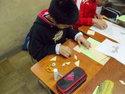 雨が少し残る中,修学院中学校へ小中交流会へでかけました。たくさんの6年生と一緒に学習をする体験が新鮮だったようです。