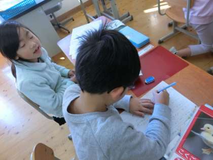 国語の学習では,友達のことをみんなに紹介する学習をしています。今日は,「今楽しいと思っていること」を友達に質問しました。みんな上手に質問をすることができていました。