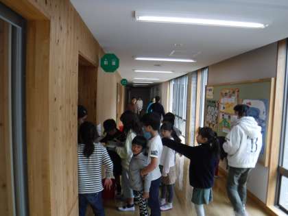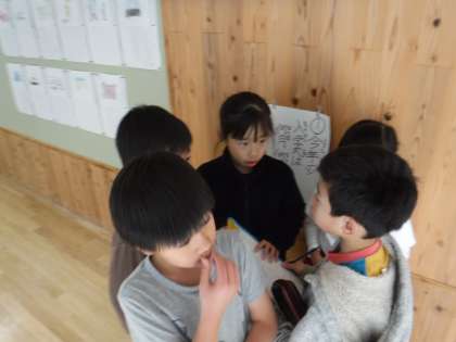 友だちグループでワイワイと考えながら,校舎を回りました。