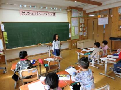 今日は,「友だちが今楽しいと思いっていること」を紹介し合いました。「どうしてそれが楽しいのか。」「だれといつするのか。」ということなど,くわしく紹介することができていました。友だちのことがたくさん知れて,とても嬉しそうでした。