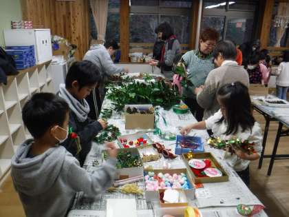 世界に一つの「クリスマスリース」を作り上げていました。