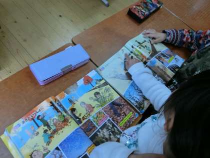 秋と冬の様子を見比べて,変化しているところを考えました。「息が白くなっているね。」「木に葉っぱが全然ついていないよ。」「着ている服が分厚くなっているね。」と,様々な変化に気付いていました。