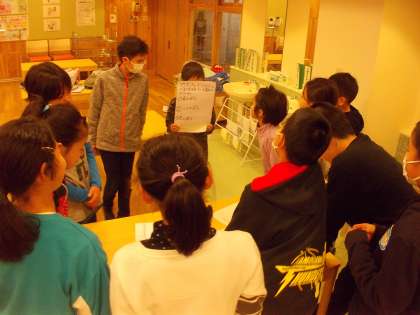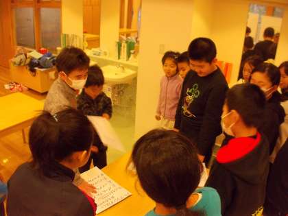 給食週間中,低中高学年に分かれ豆つまみ大会が行われています。今日は高学年の部でした。栄養や身体に関するクイズと,1分間の豆つまみです。みんな楽しく熱心に取り組んでいました。