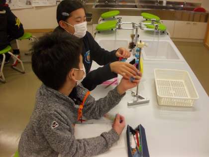 左右のうでのおもりの重さとつるす位置に関係がありそうだとすぐに気づき,どういう関係があると言えるのか,話し合って考えていきました。
