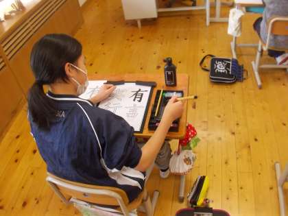 書写の学習では,自分で選んだ言葉を,自分で決めためあてに気を付けて書いていきました。自分が気を付けて書きたい点や,書いてみてさらに出てきた修正すべき点などをお手本に書いて,よりよい字を書くことができました。