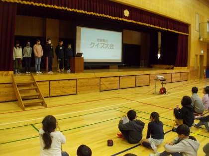 今日のロング昼休みは本部委員会による児童集会でした。楽しく学校のきまりを覚えてもらうためにクイズを考えて出題してくれました。先生たちも参加し楽しい時間になりました。