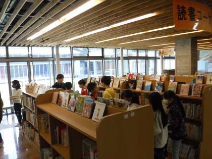 写真は,休校前日の読書コーナーの様子です。