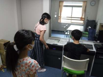 写真は,朝や給食,掃除の時間などの放送を担当する放送委員会の今朝の様子です。