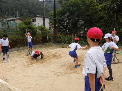 今日から「走りはばとび」の学習が始まりました。自分のめやすの記録をこえるために頑張っていました。