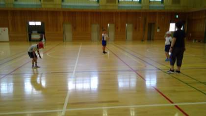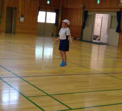 今日の体ほぐしは,フープとボール,縄跳びを使って体をほぐしました。前の時間よりもできることがたくさん増え,みんなとても良い顔で学習に取り組んでいました。