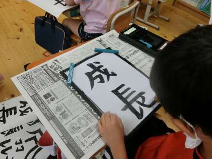 今日は毛筆で「成長」という字を書きました。気を付けて書くポイントを意識しながら,一画一画丁寧に書いていました。