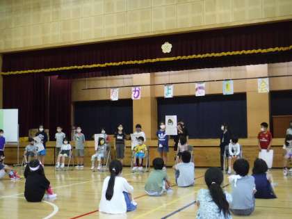 4月に入学した1年生を,全校でお迎えして,ゲームやたいそうで楽しいひと時を過ごしました。