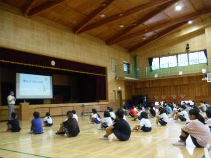 朝会では,校長先生から日本国憲法についてのお話を聞きました。