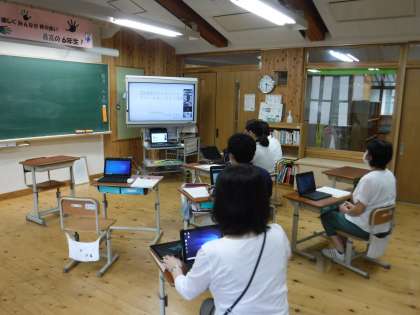 テレビ会議と学習支援ソフトを活用した学習の進め方について,研修を行いました。