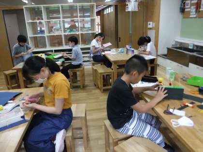 色画用紙などを使って,考えた場面を一生懸命表現していました。