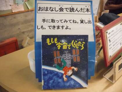 今日の6年生のお話会では,「もしも宇宙でくらしたら」という本を読んでもらいました。