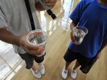 今日は,実際に高野川に行って川の水を持ち帰ってきました。