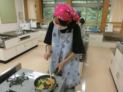 今回は,材料を洗ったり,切ったりするのは,グループで協力をしましたが,いためる工程では,自分の分は自分でいためました。