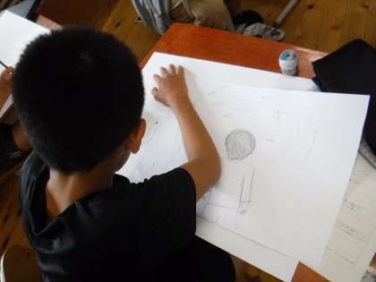 今日から下がきをしています。絵に表したい場面をイメージしながら,一生懸命かいていました。