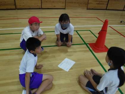 今日で「ソフトバレーボール」の学習が終わりです。今日もチームで作戦を考えて,攻め方や守り方を工夫して試合に臨みました。学習の最後の振り返りでは,「みんなで楽しくできた!」という声がたくさん聞かれました。