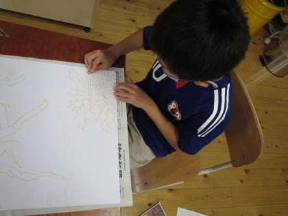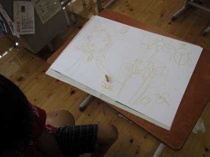 先週の図画工作科から,お話をきいてイメージを広げたことを絵に表す学習に取り組んでいます。3年生は,「はるとあき」というお話にしました。春と秋の似ている様子を表したり,春が秋と仲良くしている様子を表したり・・・一人一人が自分の表したいイメージに合うように描いていました。