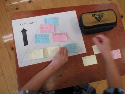 初めて知ったことや驚いたこと,不思議に思ったことなど,1つの話を読んだだけでもたくさんの発見があります。「鳥になったきょうりゅうのはなし」を読んで,みんなに伝えたいことを選んで発表しました。