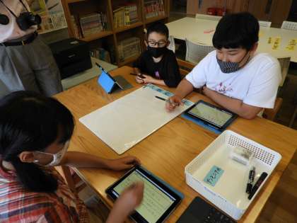今までの実験結果や学習内容,教科書の画像などは,子どもたちの手元のタブレット型PCに,ロイロノートスクールを使ってまとめてあります。