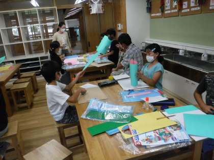 画用紙を丸めてタワーにしたり,2階建てにしたりと,高さがでるよう工夫していました。