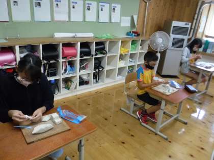 今日は,水の流れをイメージした粘土の造形を行いました。
