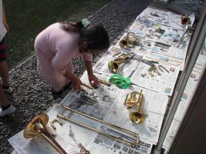 楽器洗浄をしていた5年生,久しぶりの洗浄にも関わらず,手際よく進めることができました。