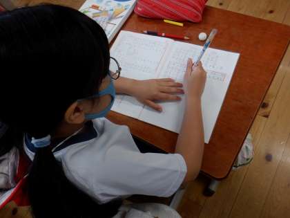 算数では,分母の数が違う分数の計算の練習をしています。通分にもだいぶ慣れてきました。