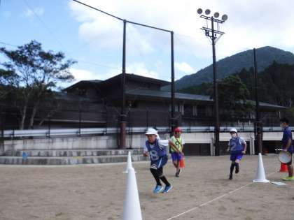 今回のスポーツフェスティバルでは,赤・青・黄・白の4チームに分かれて,2レースを行い,タイムで勝敗を競います。