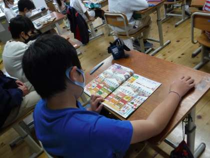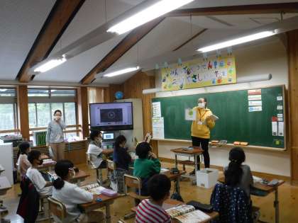 ALTの先生とともに,野菜や果物などの食材の言い方を学習しました。